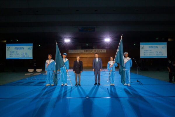 さらに、障スポ佐賀県選手団の末次団長から大会式典の旗手を務めるボウリング競技の太郎浦 祐伎(たろううら ゆうき)さんへの県旗授与も行われました。