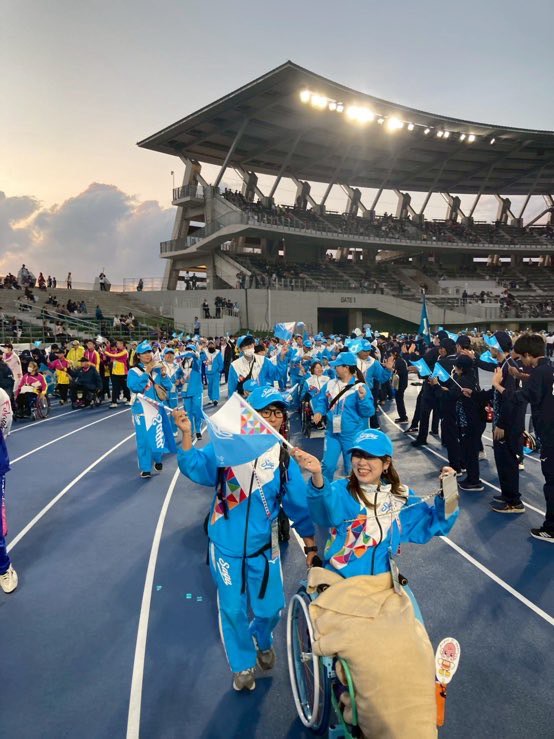今年は選手85名、役員71名の合計156名での選手団派遣でした。選手が心配なく競技ができたのは役員として関わってくださった監督、コーチ、トレーナー、介助員等多くの方々の支えと家族や職場、学校などたくさんの方の応援があったからこそです。