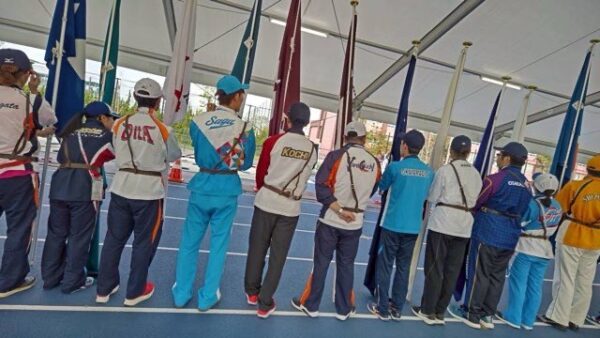 本大会の開会式では、陸上競技、アーチェリー、ボウリング競技の選手団が参加し、旗手の太郎浦祐伎選手(ボウリング競技)をはじめ、佐賀らしい元気に入場する様子や自信に満ちた笑顔が伺えました。