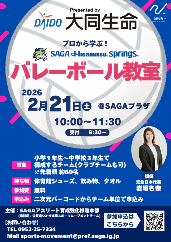 2 大同生命保険株式会社Presents 「SAGA久光スプリングス バレーボール教室」の開催概要